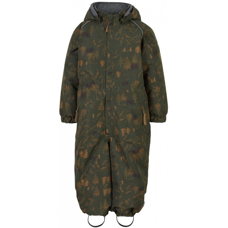 Mikk-Line  Flyverdragt Forest har følgende egenskaber: Aftagelig hætte, BIONIC-FINISH®ECO, Gummistropper i ben, Hagebeskyttelse, Indvendig Navneskilt, Justerbar Elastik i Talje, Tapede sømme, Vand og smuds afvisnede overflade, Ykk-Lynlåse. Udført i 100% Genanvendt polyester